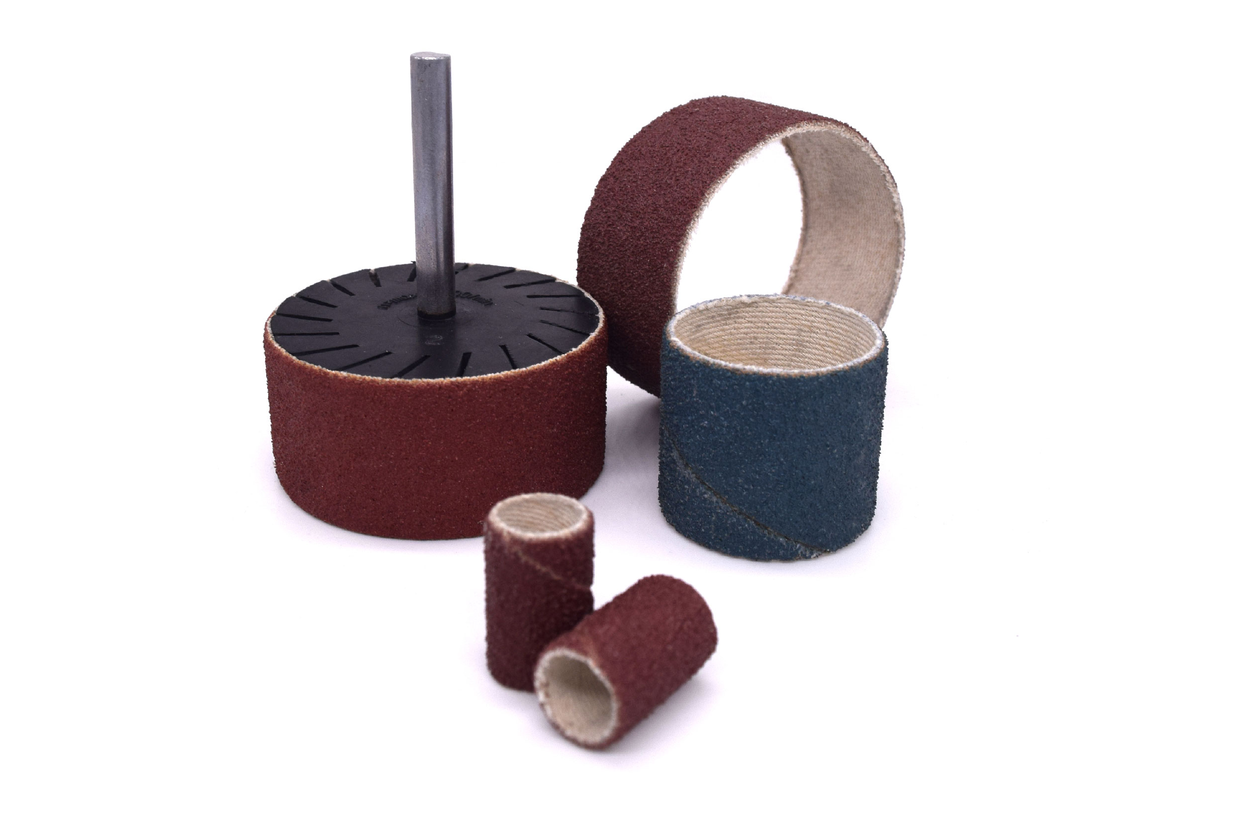 Master abrasive bands are manufactured with an overlap joint and are used on our industrial quality spindle mounted rubber holders.