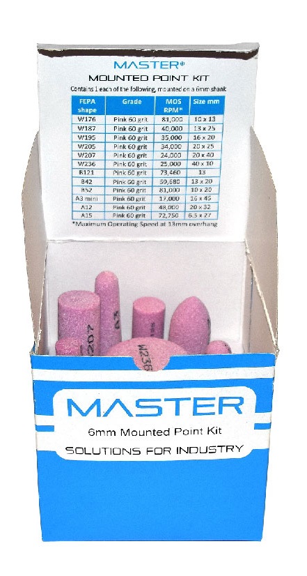 Master mounted point kits offer a selection of shapes for a variety of applications including general purpose die work.