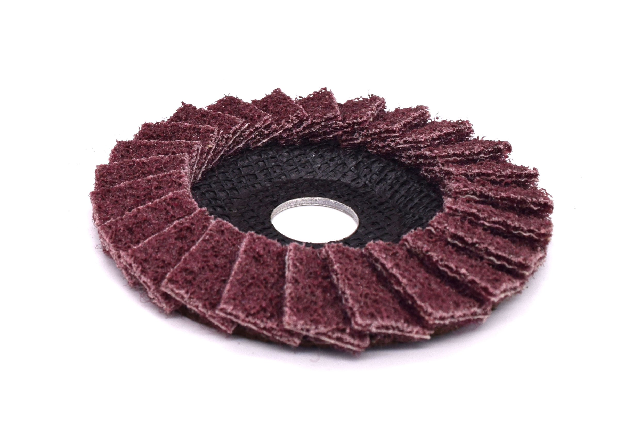 The surface conditioning flap disc are best for deburring, edge breaking, blending, cleaning, finishing and polishing after grinding has been done with a resin fibre or flap disc on aluminium, steel and titanium. The overlapping flaps provide several layers of abrasives for increased durability and enhanced cut rate.