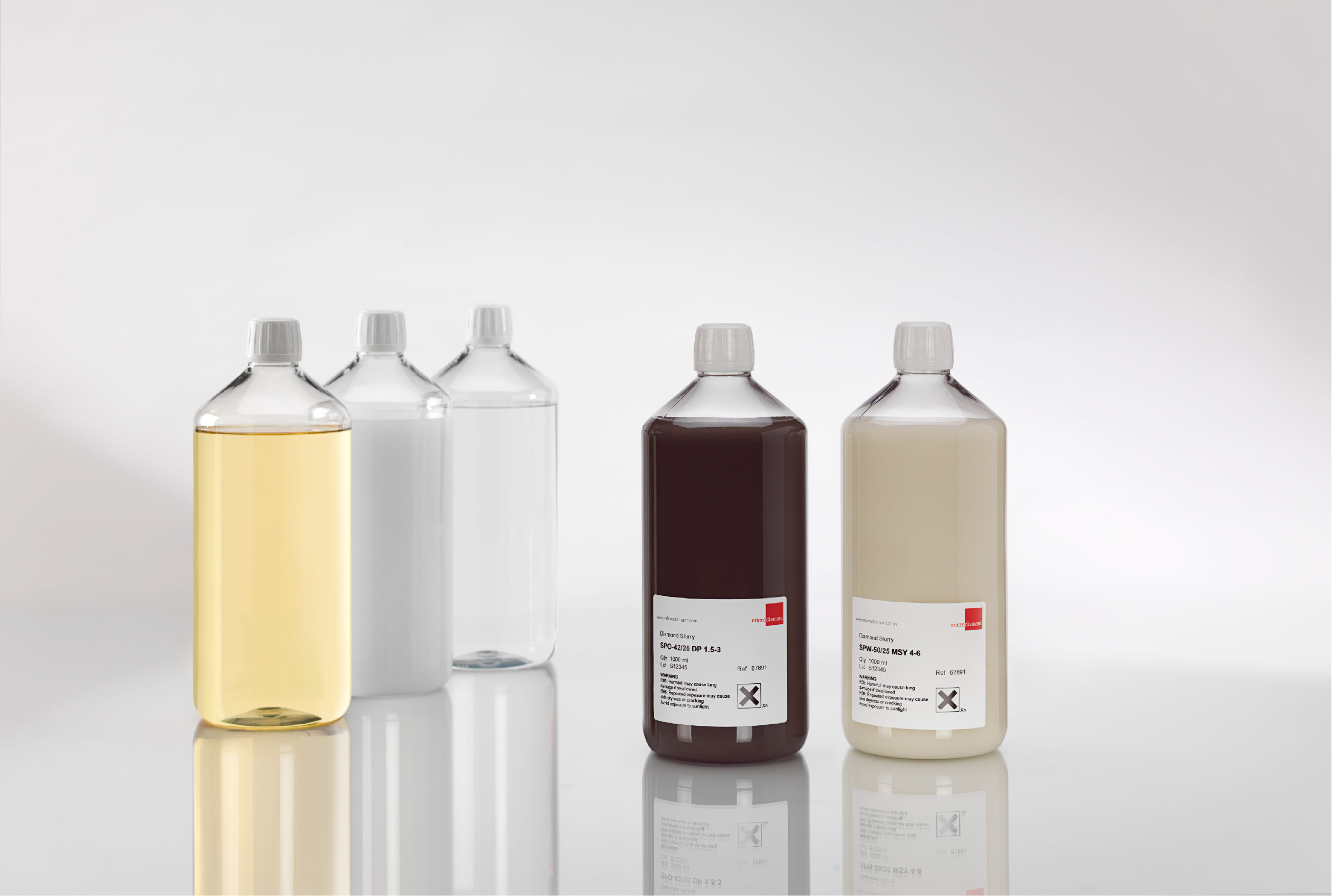 Diamond slurries are offered for various industries, ideal for lapping and polishing of hard materials. Microdiamant offer both engineered and ready-to-use diamond slurries. Engineered slurries offer flexibility to adapt to the exact product needs to achieve optimal performance, process stability and cost-effectiveness. Ready-to-use diamond slurries combine highest-level of precision graded micron diamond sizes with chemical formulations designed to offer exceptional removal rate and surface quality. They also enable customers to achieve high performance but help to minimise total process cost.