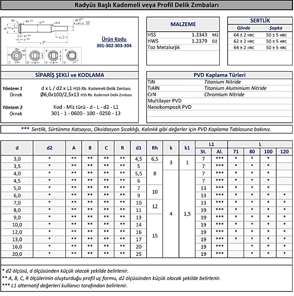 Şapka kopma problemleri yaşanan, yüksek mukavemetli ve kalın kesitli çelik sacların işlenmesinde tercih edilmektedir. Kademe ve farklı uç profilleri ( oval (koza, slot), kare , dikdörtgen, altıgen ) gerekli olduğunda kullanılmaktadır. Genellikle otomotiv ve bağlantı elemanları sektörlerinde kullanılmaktadır. Bu tür saclar için, Pvd kaplamaların da baskı sayılarının artmasına oldukça fazla etkisi olmaktadır.
