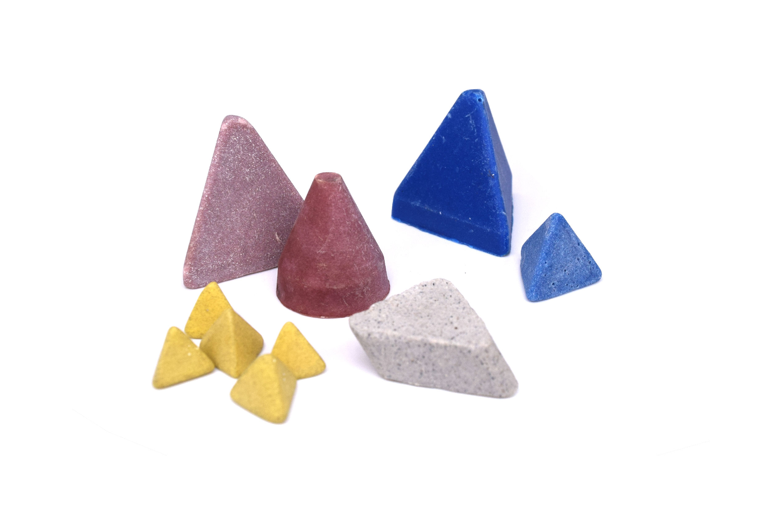 In comparison with ceramic media, plastic media is well suited on softer materials. Suitable applications include deburring, grinding, smoothing, and producing a matte or pre-plate finish. Due to its composition, this media keeps its shape as it wears down. Master plastic media is offered in different abrasive grades and geometries, including cones in grades fine cut to medium fine.